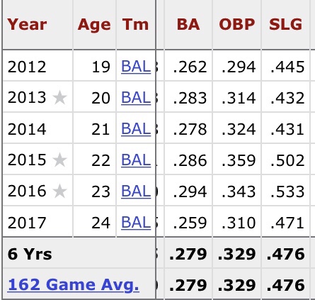 Unlike many people, I’m not that high on Manny Machado. Yes, he’s a great defender who can also play shortstop, he doesn’t strike out that much and is only 25… I get it, that said though he’s had two major knee surgeries and doesn’t walk much. Take a look at his batting line over the past few years (courtesy of Baseball-Reference.com):
